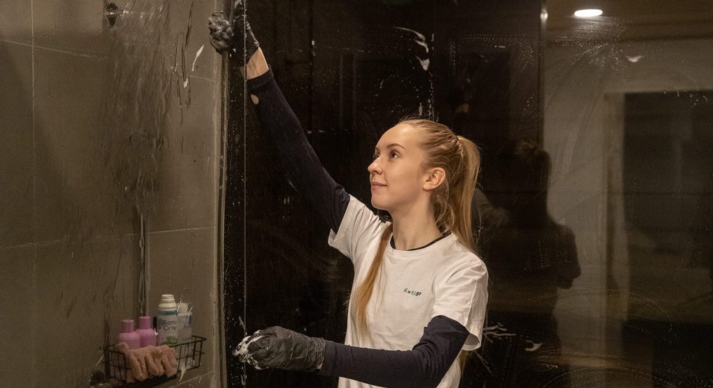 Suihkukalusteiden ja lasiseinien puhdistus.
